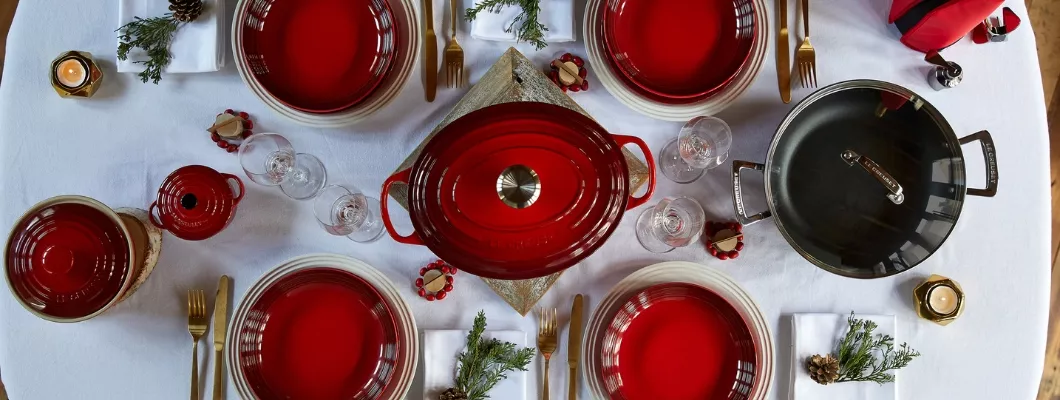 Massage a generous pinch of salt over the skin and drizzle a little bit of olive oil. Place the duck, breast side up in a Le Creuset 31cm Signature Oval Casserole and roast for 20 minutes.